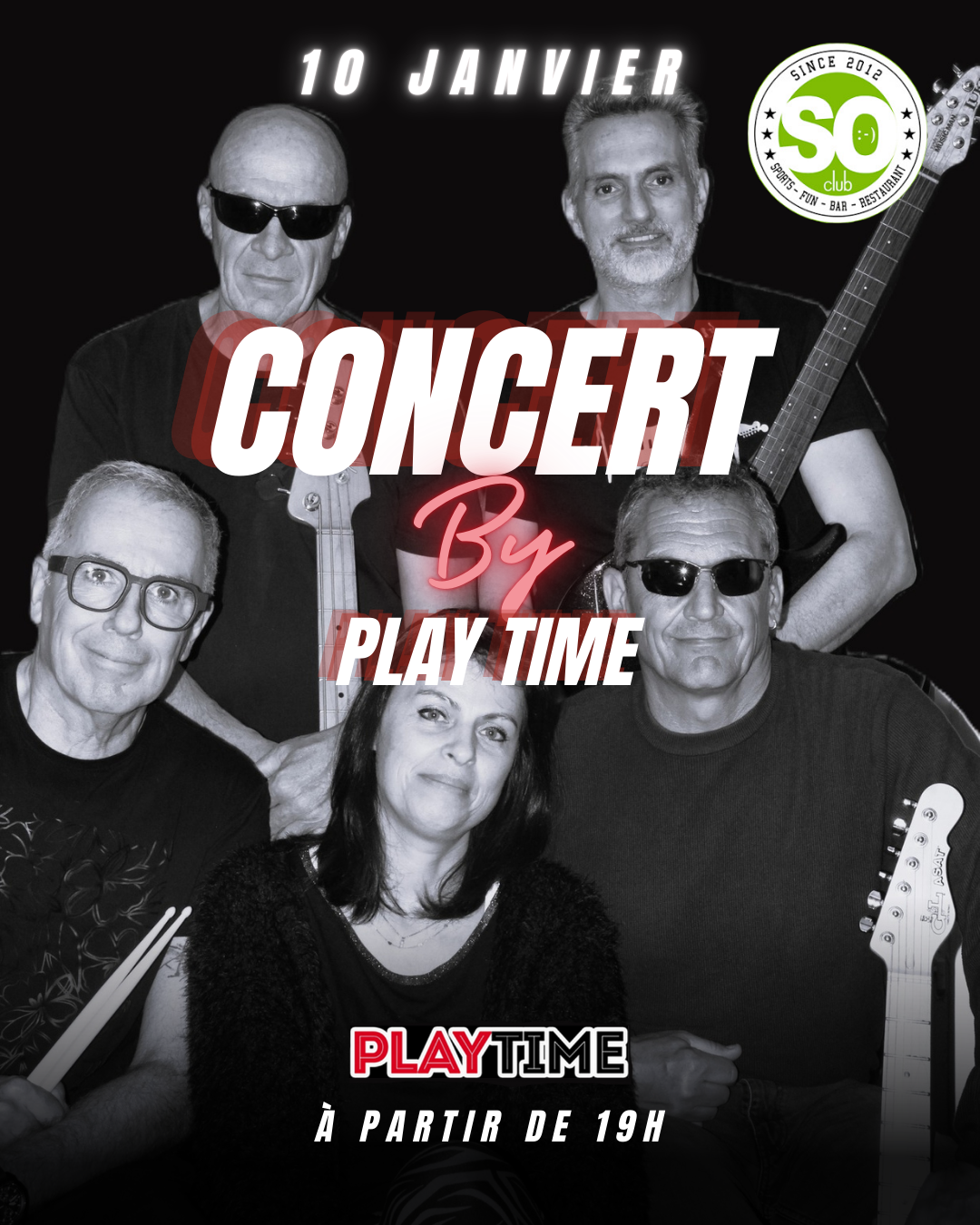 Mis en avant 10 janvier 2026 le 19h00 - 23h30 Concert by Play Time 🎶 Viriat 39 chemin de liavoles, Viriat, France