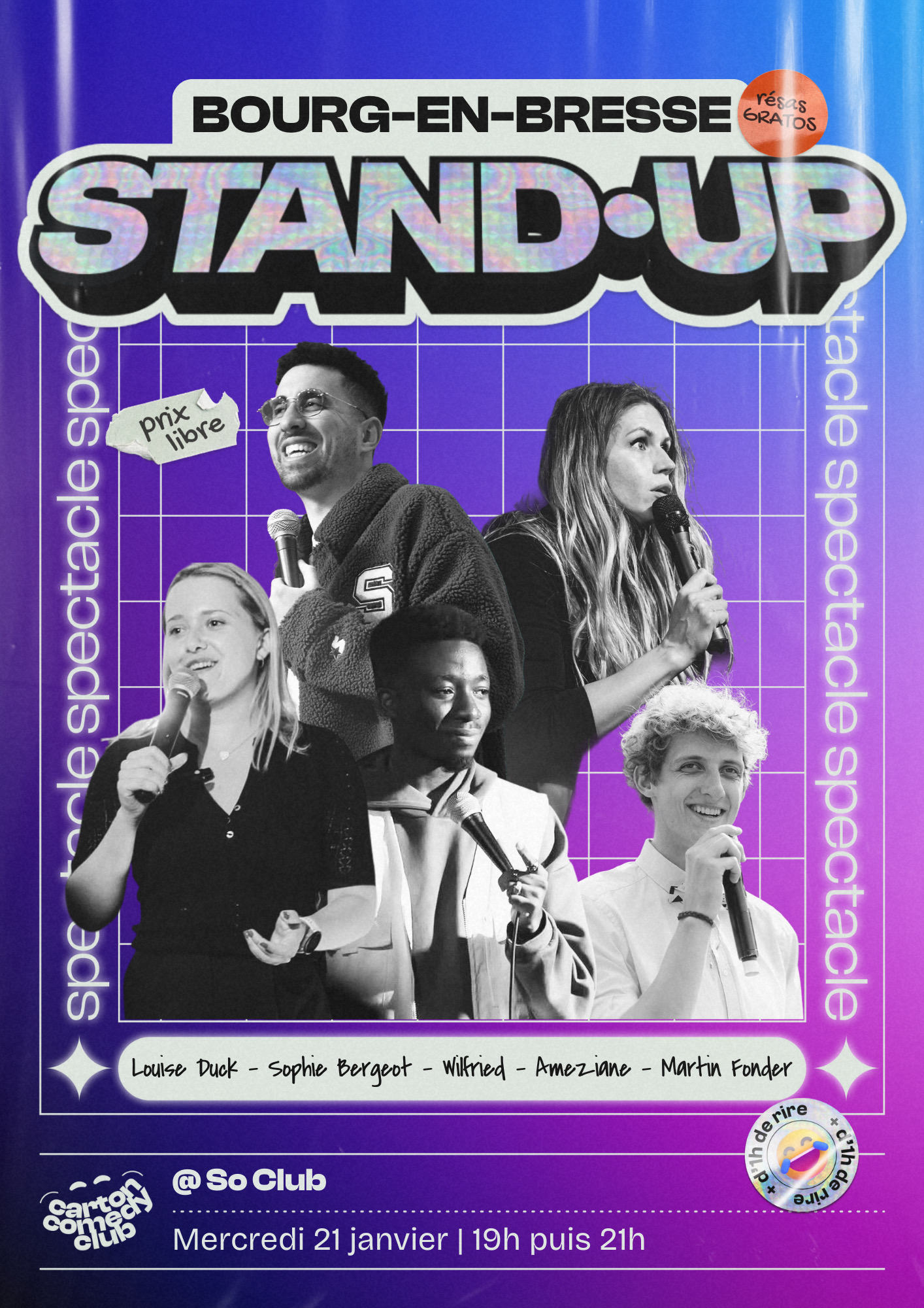 Mis en avant 21 janvier 2026 le 19h00 - 23h30 Soirée Stand Up Viriat 39 chemin de liavoles, Viriat, France https://www.eventbrite.fr/e/1976973124835